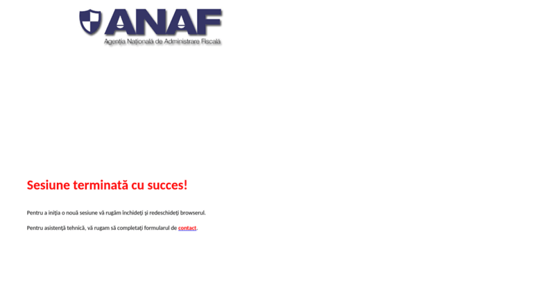 Modificarea neautorizata a acestui site web constituie infractiune si se pedepseste conform legii nr. Pentru asistenţă tehnică, vă rugam să completaţi formularul de contact. Continutul acestui site este proprietatea agentiei nationale de administrare fiscala.. Modificarea neautorizata a acestui site web constituie infractiune si se pedepseste conform legii nr.